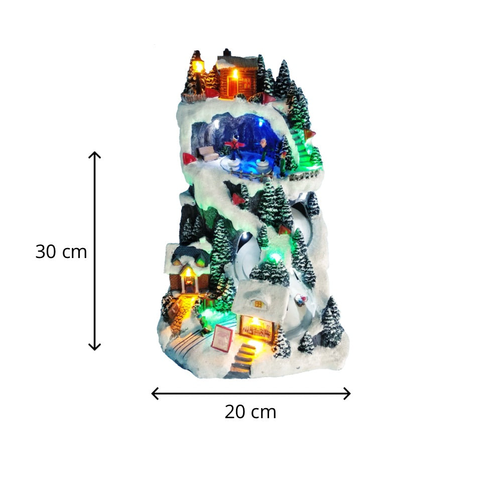¡Embárcate en una aventura invernal con nuestra Villa Navideña con Montaña de Nieve! Esta maravilla invernal te transportará a un mundo de magia y diversión. Con una impresionante iluminación que resalta cada detalle, la montaña de nieve cobra vida con esquíes deslizándose por sus laderas. La escena es una oda al espíritu festivo, donde la alegría y la emoción llenan el aire. Esta villa no solo es una decoración, es una experiencia que trae el encanto de la Navidad a tu hogar. ¡Celebra la temporada de la manera más mágica con esta espectacular villa!