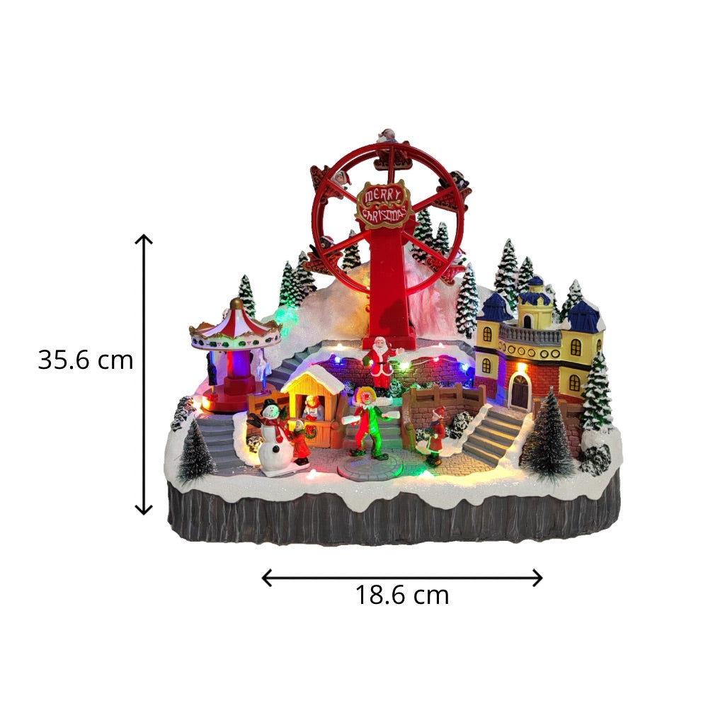 ¡Descubre la Villa Navideña Rueda! Esta hermosa villa navideña se mueve con una rueda roja que captura la atención. El diseño detallado incluye iluminación y 7 melodías navideñas instrumentales. Dale vida a tus fiestas de Navidad con un toque de diversión y magia. ¡Prepárate para disfrutar!